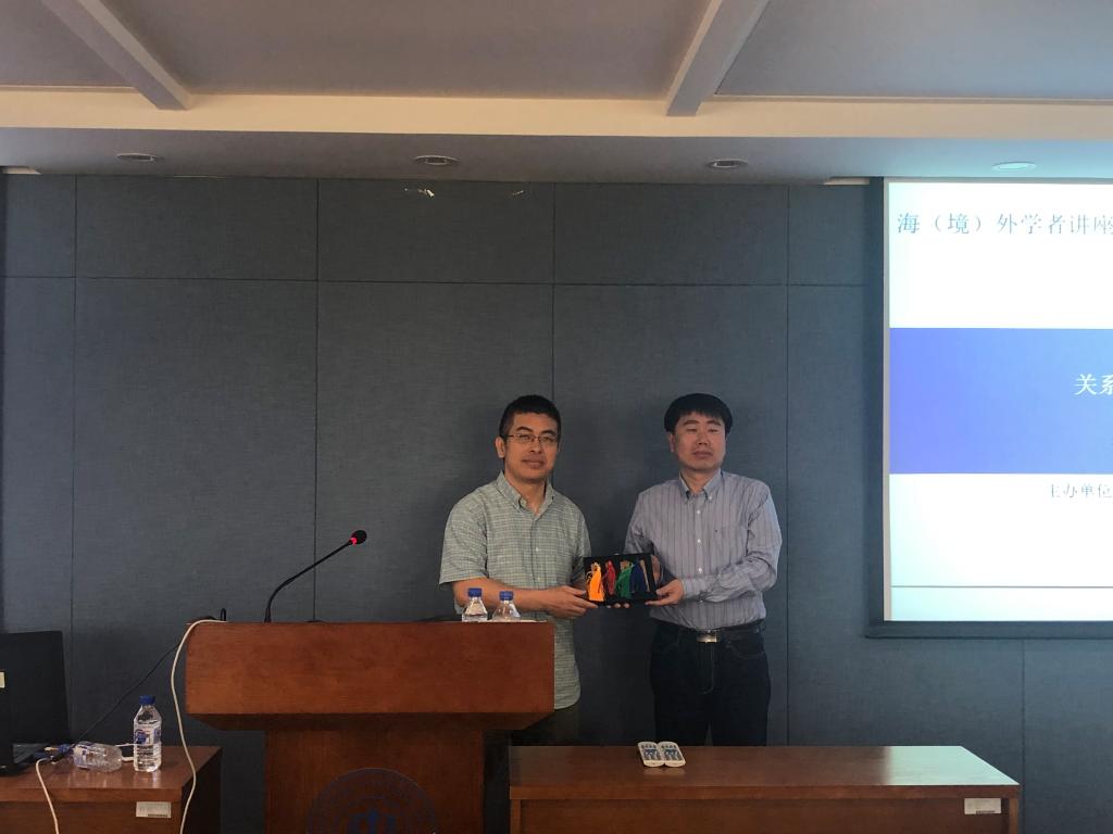 向贺欣教授赠送了纪念品希望贺欣教授能与成人抖音