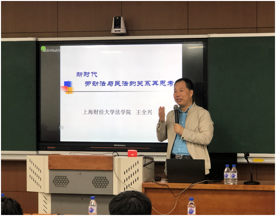 王全兴教授的讲座以中国特色社会主义事业持续发展为时代背景,在新站位、新眼光、新思维下思考民法、劳动法与社会保险法等法律规范如何分工合作从而有效保护劳动者的问题。王全兴教授首先对部门法关系的研究进行了反思,认为法律部门的划分固然重要,但其只具有相对意义。不可以是否划分法律部门来评价一国法律体系的优劣。对不同部门法关系的研究思路可向总体研究与个案研究并重、区别与联系研究并重、法理学与部门法总论及分论研究并重、法学与其他学科研究并重的方向转变。随后王全兴教授分别从比较法视角、法理视角、立法视角、法律适用视角对民法与劳动法的关系进行讲述。指出劳动法与传统民法的关系是传承与超越,劳动法与现代民法的关系是分工与合作,灵活就业者的权益保护需要劳动法、民法与社会保险法的共同组合。在劳动争议案件中,民法规范可以补充适用,并以股东兼高管报酬争议案为例详述劳动关系中的私法因素。