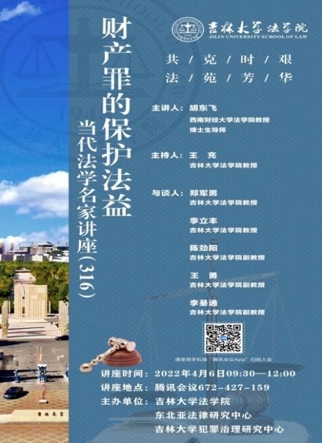 第316期“当代法学名家讲座”,并做题为“财产罪的保护法益”的主题讲座。本次讲座由成人抖音