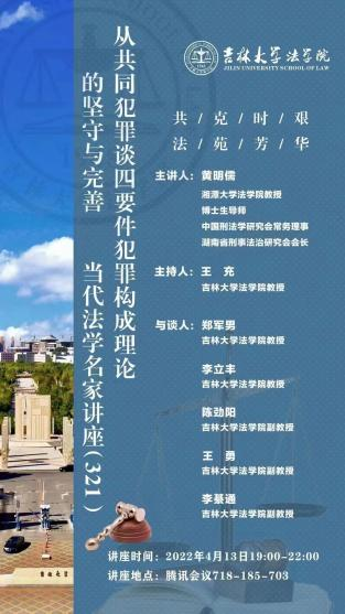 第321期“当代法学名家讲座”,并开展题为“从共同犯罪谈四要件犯罪构成理论的坚守与完善”的主题讲座。讲座由成人抖音