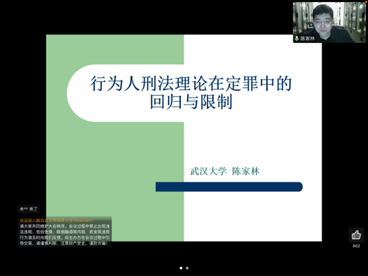 讲座伊始,陈家林教授在感谢各位老师与同学参与本次的讲座后,提出尽管学界普遍认为当前我国的刑法本质上属于行为刑法,但在刑法中是否存在受到行为人刑法影响的条款仍是一个值得思考的问题。基于以上的问题意识,陈教授希望通过简要介绍与回顾行为刑法与行为人刑法各自的特点,尤其是行为刑法本身的价值取向与性质特征,在结合我国目前刑法相关规定的同时,反思与回顾以德日为代表的国外刑法理论在相关问题上的通说,从而对是否应当完全排斥行为人刑法于犯罪论层面上的功能与作用这一问题作出合理的回应。