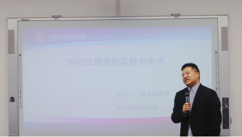 首先,白永亮博士结合自身的实践经验,深入探讨了劳动法这一应用性学科的内涵与外延。他强调,劳动法不仅是一门学科,更是一种服务,同学们在研究劳动法时,不仅要关注理论上的进步,同时在实践方面也要进行创新和探索。