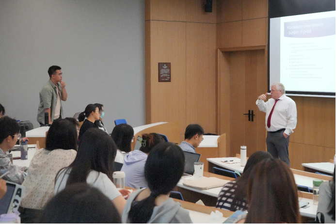 在互动环节,Howells教授向同学们抛出了“科技如何影响法律?”等有趣的问题并引导大家进一步思考,几位同学针对讲座内容进行提问并得到了Howells教授的耐心解答。温双阁教授也从不同方面对本次讲座作出了简要的总结。现场气氛轻松热烈,同学们受益匪浅。在热烈的掌声中,本次讲座圆满落下帷幕。