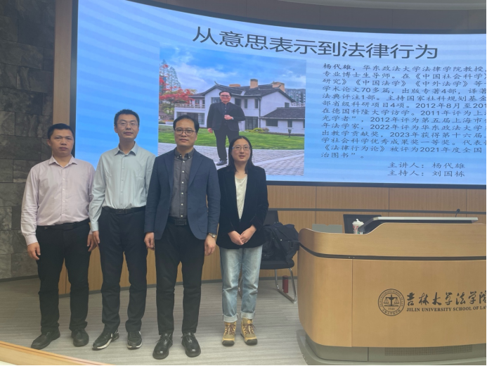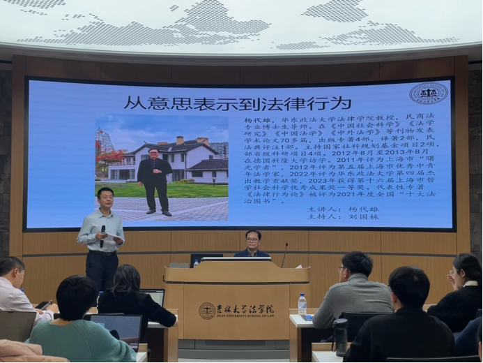 中心校区法学楼B404室举办了主题为“从意思表示到法律行为”的讲座。本场讲座由刘国栋副教授主持,曹相见教授、任倩霄老师与谈。