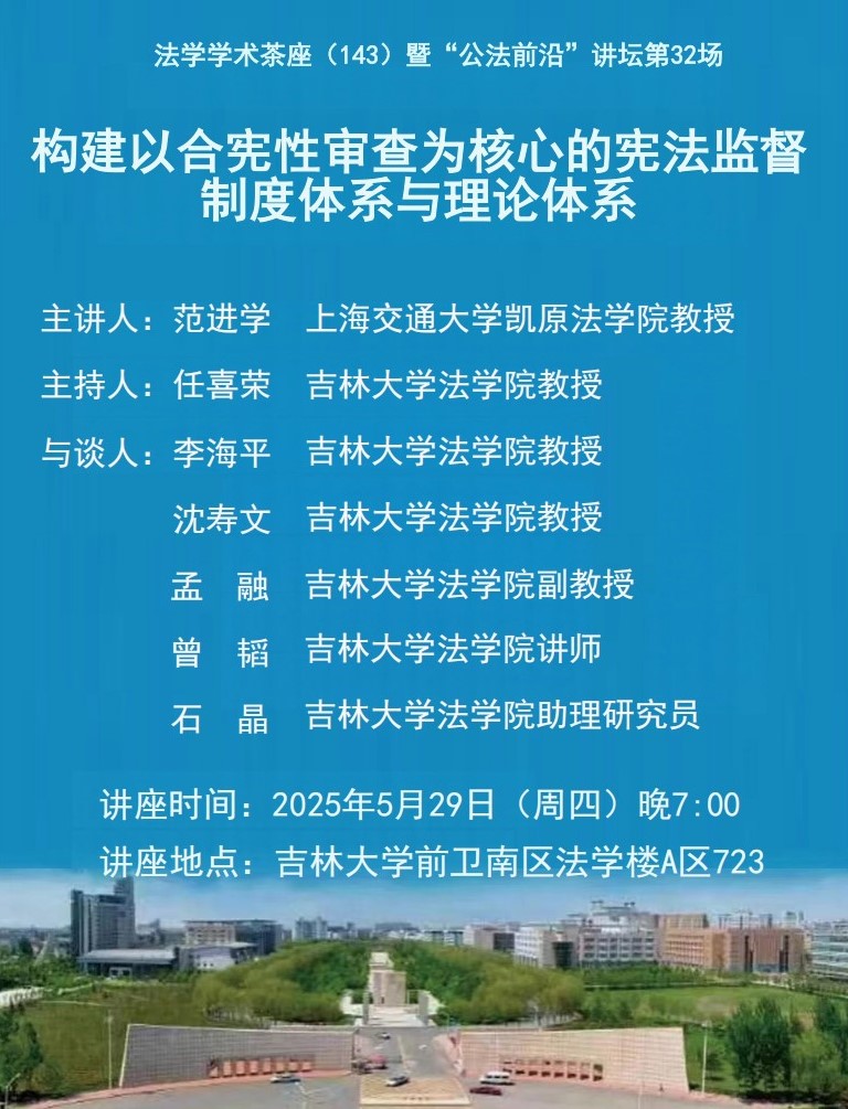 上一篇:成人抖音 法学学术茶座(144)暨“公法前沿”讲坛第33场:备案审查的中国图景:涉宪性审查及有错必纠多态化例说 下一篇:【转发】关于申报吉林省第十五届社会科学优秀成果奖的通知
