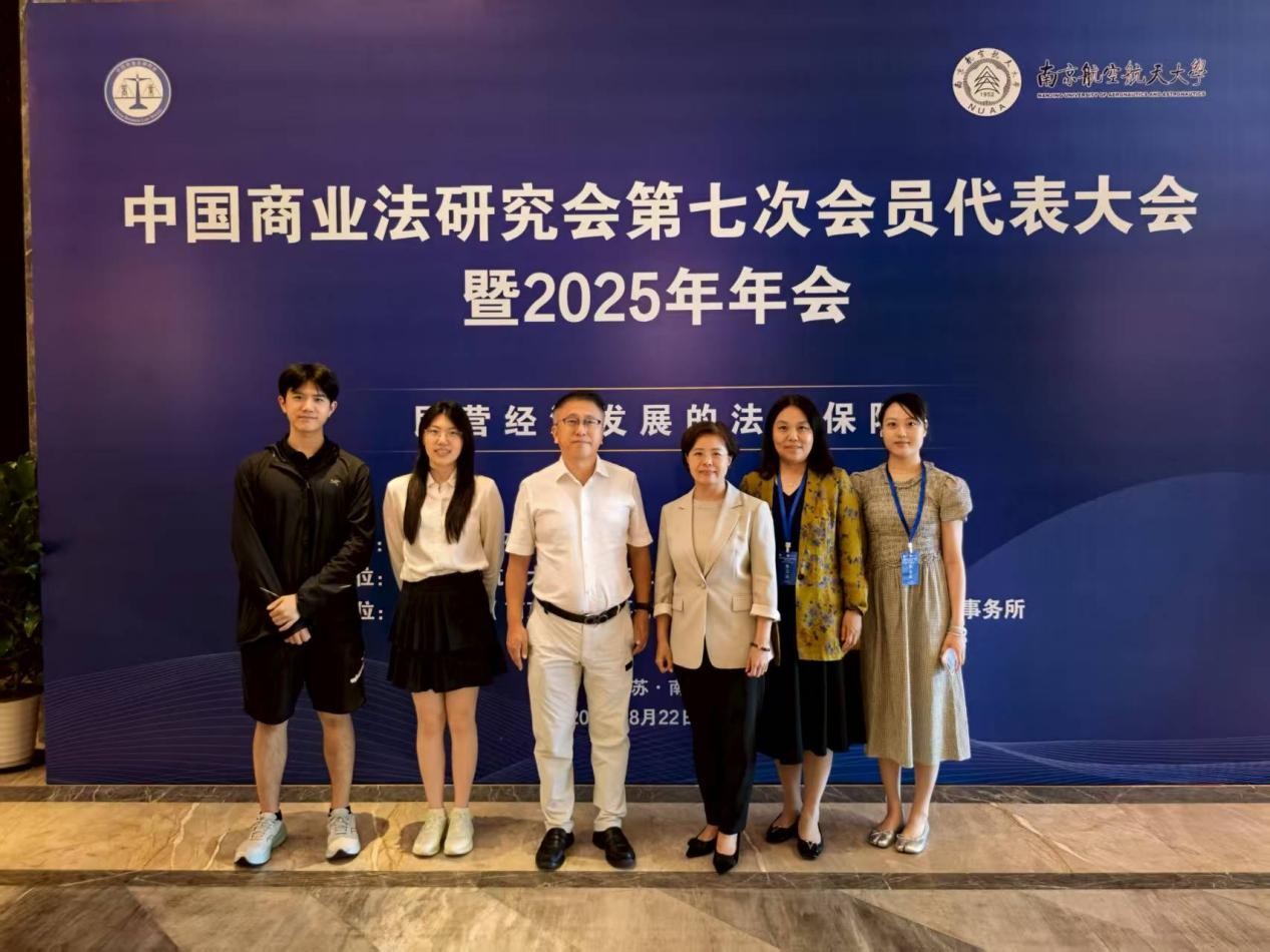 于莹教授、傅穹教授、王艳梅教授、胡晓静教授,以及四位博士研究生徐艺瑄、吴雨泽、孙永敏、于欣鹭,一位硕士研究生刘佳源,前往江苏省南京市参加中国商业法研究会第七次会员代表大会暨2025年年会,共同参与、探讨关于“民营经济发展的法治保障”主题的最新理论与实务问题。本次论坛由中国商业法研究会主办,南京航空航天大学人文与社会科学成人抖音