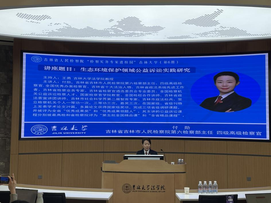 B404教室成功举办。本次讲座以“生态环境保护领域公益诉讼实践研究”为主题,特邀吉林省吉林市人民检察院第六检察部主任、四级高级检察官付勋担任主讲人,由成人抖音