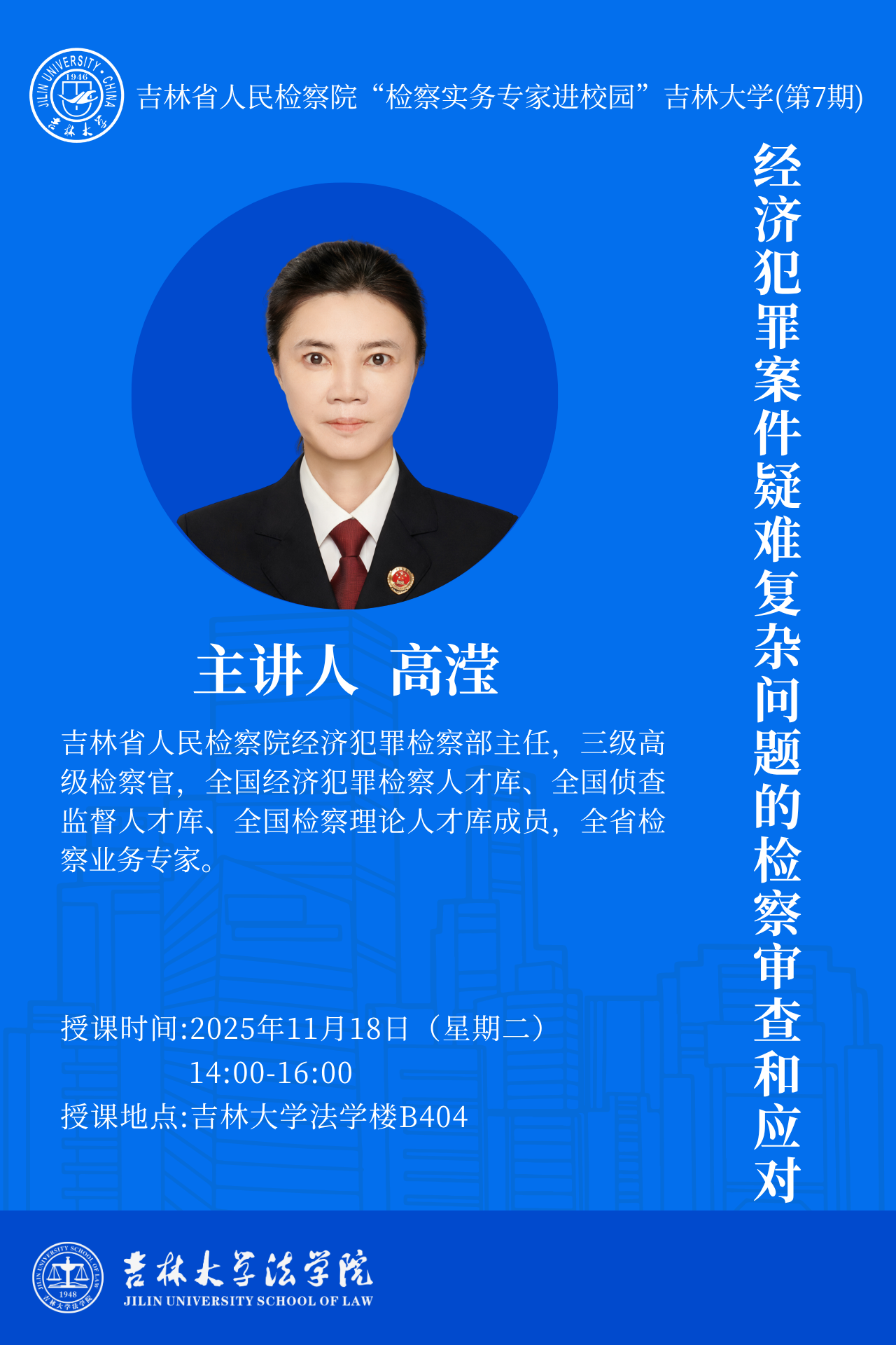 上一篇:吉林省人民检察院“检察实务专家进校园”第6期开讲——生态环境保护领域公益诉讼实践研究 下一篇:吉林省人民检察院“检察实务专家进校园”第5期开讲—普通犯罪检察若干问题的分析