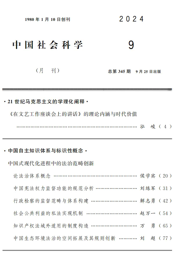 侯学宾教授在《中国社会科学》2024年第9期发表题为《论法治体系概念》的文章。